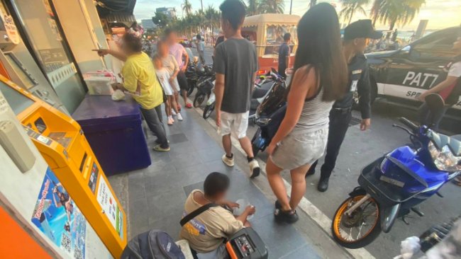 เจ้าหน้าที่กระจายกำลังตรวจตามพื้นที่เป้าหมาย เช่น ถนนคนเดินพัทยาใต้ ถนนพัทยาสายสอง ชายหาดพัทยา และซอยบัวขาว ก่อนพบขอทานรวม 10 ราย แบ่งเป็น ชาย-หญิงชาวไทย 6 คน หญิงชาวกัมพูชา 1 คน พร้อมลูกเล็ก 3 คน สภาพบางคนหลับนอนข้างทาง บางรายปูเสื่อนั่งขอทานริมฟุตปาธ ท่ามกลางสายตานักท่องเที่ยวที่ผ่านไปมา