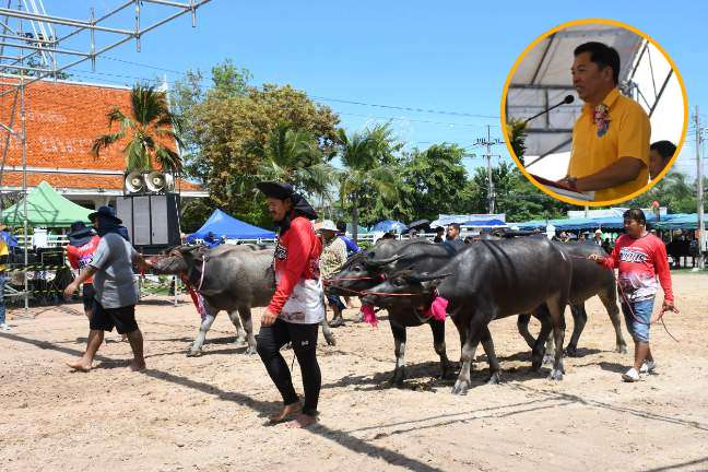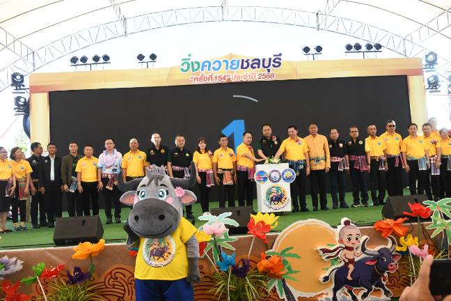 ที่บริเวณสนามหน้าที่ว่าการอำเภอเมืองชลบุรี เมื่อเวลา 09.30 น.วันที่ 6 ตุลาคม 2568 นายสุชาติ ชมกลิ่น รองนายกรัฐมนตรีและรัฐมนตรีว่าการกระทรวงทรัพยากรธรรมชาติและสิ่งแวดล้อม พร้อมด้วย นายนริศ นิรามัยวงศ์ ผู้ว่าราชการจังหวัดชลบุรี นายวิทยา คุณปลื้ม นายกองค์การบริหารส่วนจังหวัด (อบจ.) ชลบุรี หัวหน้าส่วนราชการ คณะผู้บริหารองค์กรปกครองส่วนท้องถิ่น และหน่วยงานที่เกี่ยวข้อง ร่วมงานประเพณีวิ่งควาย ประจำปี 2568 ที่มีการจัดขบวนแห่เกวียนกัณฑ์ 13 กัณฑ์ ขบวนคำขวัญจังหวัดชลบุรี ไปรอบตลาดเมืองชลบุรี ท่ามกลางนักท่องเที่ยวทั้งชาวไทยและชาวต่างชาติให้ความสนใจมาร่วมงานเป็นจำนวนมาก