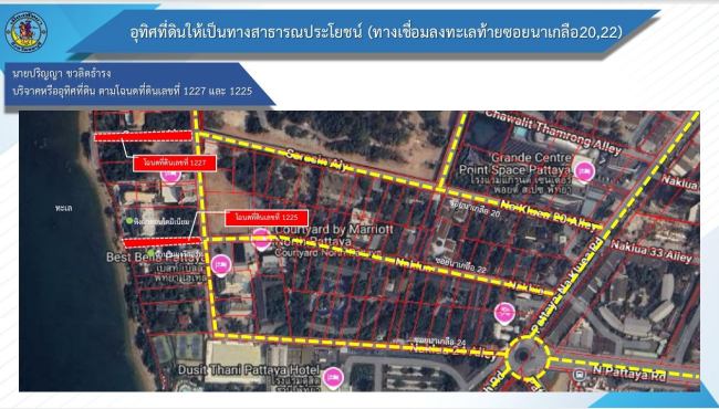 นอกจากนี้ เมืองพัทยายังได้รับการอุทิศที่ดินสาธารณะจากทายาท นายปริญญา ชวลิตธำรง จำนวน 2 แปลง บริเวณซอยนาเกลือ 20 และ 22 เพื่อเปิดเป็นทางเชื่อมลงทะเล รวมถึงได้ปรับปรุงพื้นที่สาธารณะหลังเมกาโฮมพัทยา (สุขุมวิท–พัทยา 85) ให้ประชาชนใช้ประโยชน์ชั่วคราวแล้ว