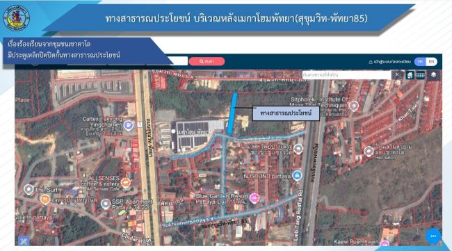 ในส่วนของการแก้ไขปัญหาการบุกรุกพื้นที่สาธารณะ เช่น พื้นที่ของ นางสายหยุด ชมสวัสดิ์ และพื้นที่คลองพัทยาใต้ เมืองพัทยาได้แจ้งเตือนและดำเนินการตามกฎหมาย โดยบางรายยินยอมรื้อถอนสิ่งปลูกสร้างเอง