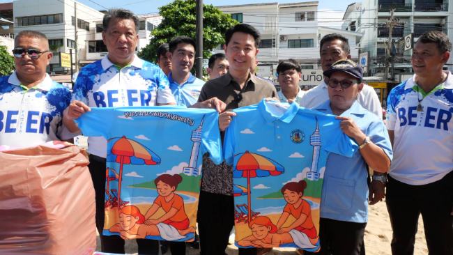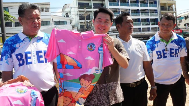 ที่ชายหาดจอมเทียน (16 ต.ค.2568) นายปรเมศวร์ งามพิเชษฐ์ นายกเมืองพัทยา พร้อมสมาชิกสภาเมืองพัทยา เขต 4 ได้มอบเสื้อให้ผู้ประกอบการนวดชายหาดและผู้ให้บริการในเขตปลอด รวม 231 ตัว โดยหมอนวดจอมเทียนได้รับเสื้อยืดสีชมพู จำนวน 101 คน และผู้ประกอบการเขตปลอดได้รับเสื้อสีฟ้า จำนวน 130 คน