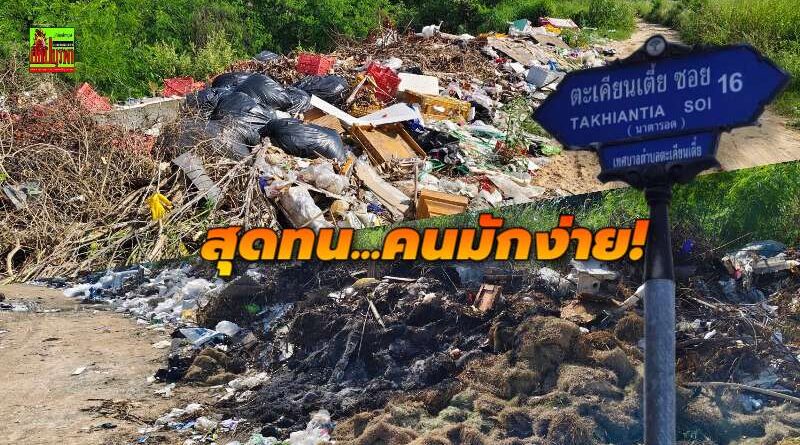 ต่อมาเมื่อวันที่ 23 ตุลาคม 2568 ผู้สื่อข่าวเดินทางไปยังบริเวณหลังหมู่บ้าน “ทรายแก้ว” ต.ตะเคียนเตี้ย อ.บางละมุง จ.ชลบุรี อยู่ภายในซอย “ตะเคียนเตี้ย ซอย16” หรือ “ซอยนาตารอด” พบขยะถูกคนมักง่าย นำมาเททิ้งเรี่ยราดสุมกองเป็นภูเขาเลากา แนวขยะสิ่งปฏิกูล มองดูสุดหูสุดตาเป็นระยะทางยาว ตลอดแนวริมถนนเลียบคลองศาลปู่เสือ เท่าที่สังเกตเป็นขยะจำพวก ตะกร้าพลาสติกที่ชำรุด แผ่นป้ายของห้างร้านชื่อดังระดับประเทศ เศษวัสดุก่อสร้าง อิฐ หิน ไม้ แผ่นฝ้ายิบซั่ม กล่องโฟม ชักโครกแตกหัก ศาลพระภูมิเก่า ที่นอนเก่า นอกจากนี้ ยังมีขยะสดจำพวกผัก ผลไม้ ซากสัตว์ ถูกนำมาทิ้ง ส่งกลิ่นเน่าเหม็นตลบอบอวลทั่วบริเวณ อีกทั้งยังพบร่องรอยเผาขยะ ทั้งรอยเก่าและรอยเพิ่งเผาใหม่ให้เห็น คาดว่ามีการจุดไฟเผาเป็นประจำ