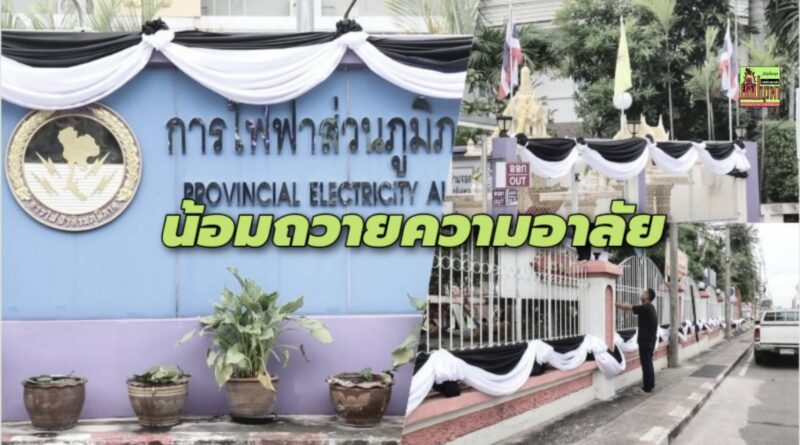 หน่วยงานราชการในพื้นที่อำเภอบางละมุงประดับผ้าขาว-ดำ แสดงความอาลัย สมเด็จฯ พระบรมราชชนนีพันปีหลวง